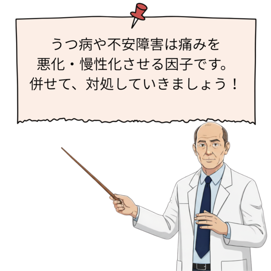 慢性の痛みとうつ病・不安症の関連性についてお伝えします。