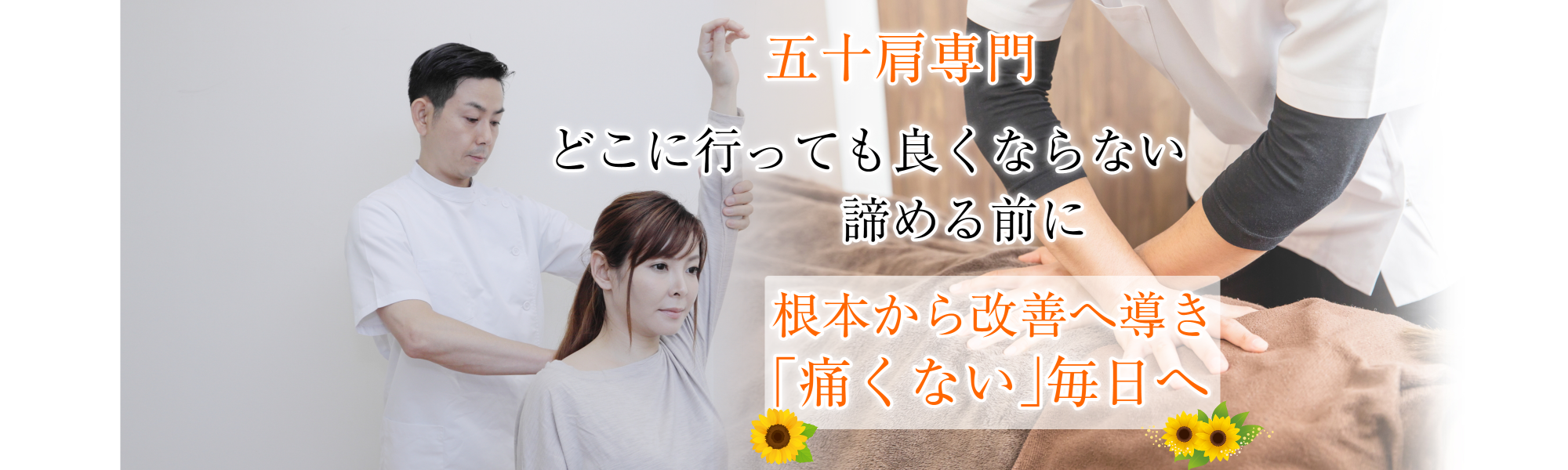 そんな時にひまわり接骨院を紹介してもらい、五十肩は治るものなのか半信半疑ながら通院を始めました。